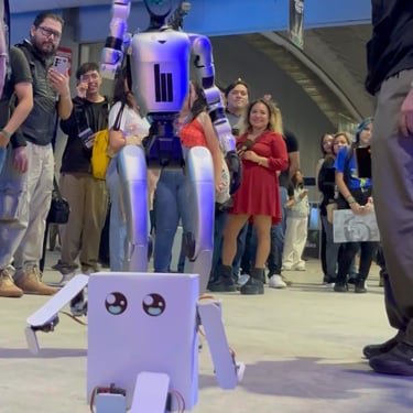 En este evento, el fundador llevó consigo a Cubito Robot, no como una simple exhibición, sino como una extensión viva del proyecto. Mientras el creador establecía conexiones con marcas y exploraba oportunidades, Cubito recorrió el lugar a su manera: interactuando con personas, descubriendo nuevas tecnologías y generando algo inesperado… conexión real con el público.