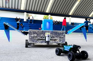 Nació como un prototipo experimental construido con materiales accesibles y reciclados, demostrando que la robótica podía transformarse en una experiencia real, intensa y abierta para todos.